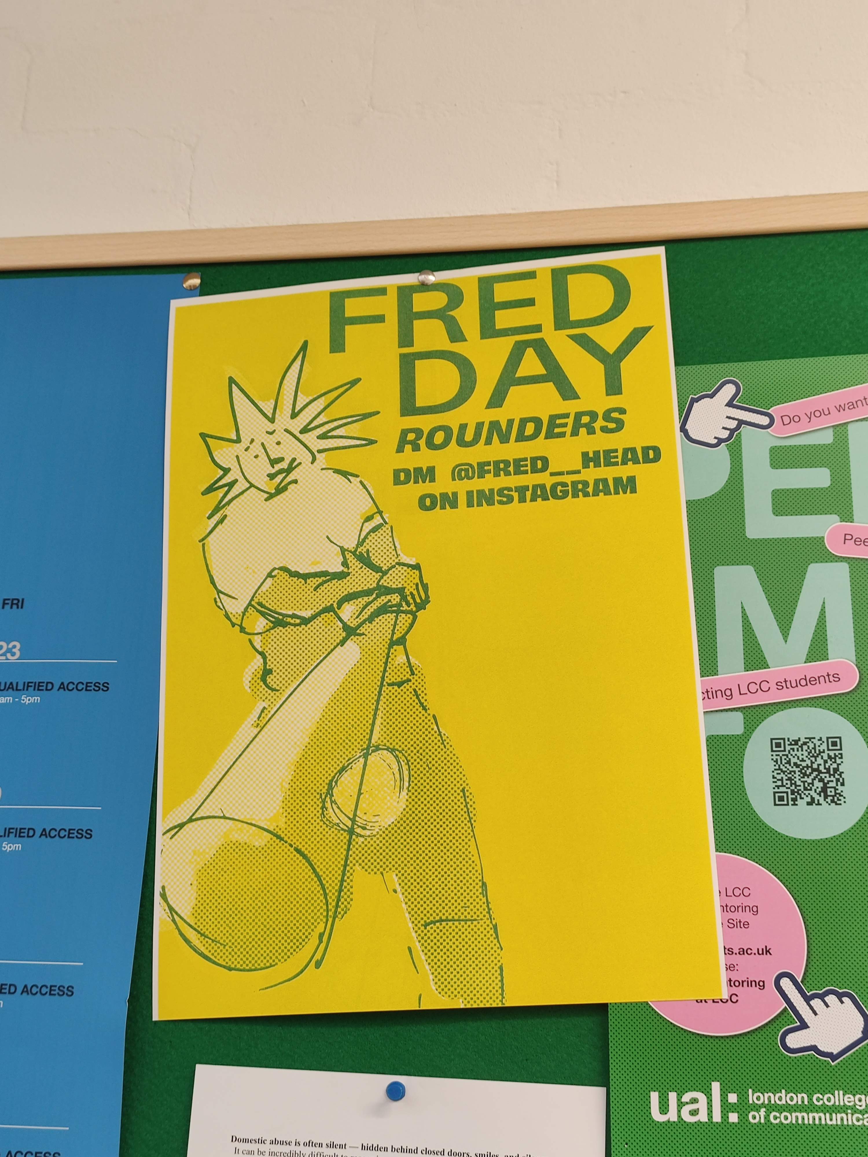 Fred Day is a design project / event I somewhat started as a joke for my birthday last year, a day where my friends and I can become kids again for a day. A day of duck duck goose, hide and seek, bulldog and most importantly rounders. After my birthday, upon posting photos of the deliverables I made for my own birthday / event, I had many people reach out to me for how they could join my ‘club’. From here my project has evolved, I intend to make a biweekly event open to all who are respectful of one another to come play rounders and games and have fun. If you want to join, DM me at: